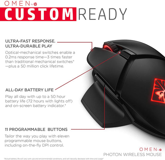 OMEN by HP Photon Wireless Gaming Mouse with Qi Wireless Charging, Programmable Buttons, Custom RGB, E-Sport DPI (6CL96AA)