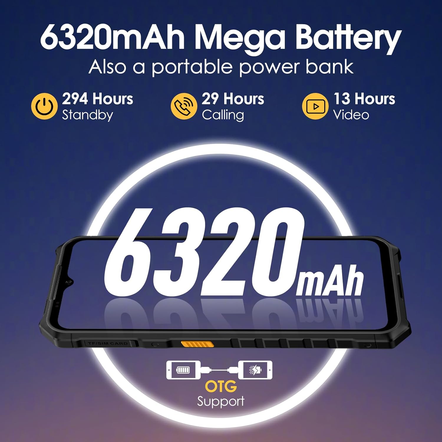 - 【6320mAh Battery】: Battery capacity of Armor X 13 is a massive 6320mAh for a more secure longer periods outdoor. Reverse charging function will help when watches, smartphones or earbuds are completely drained without access to charger.