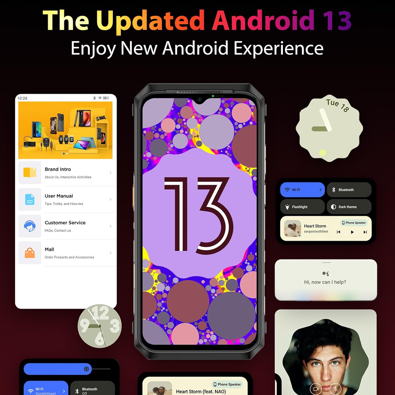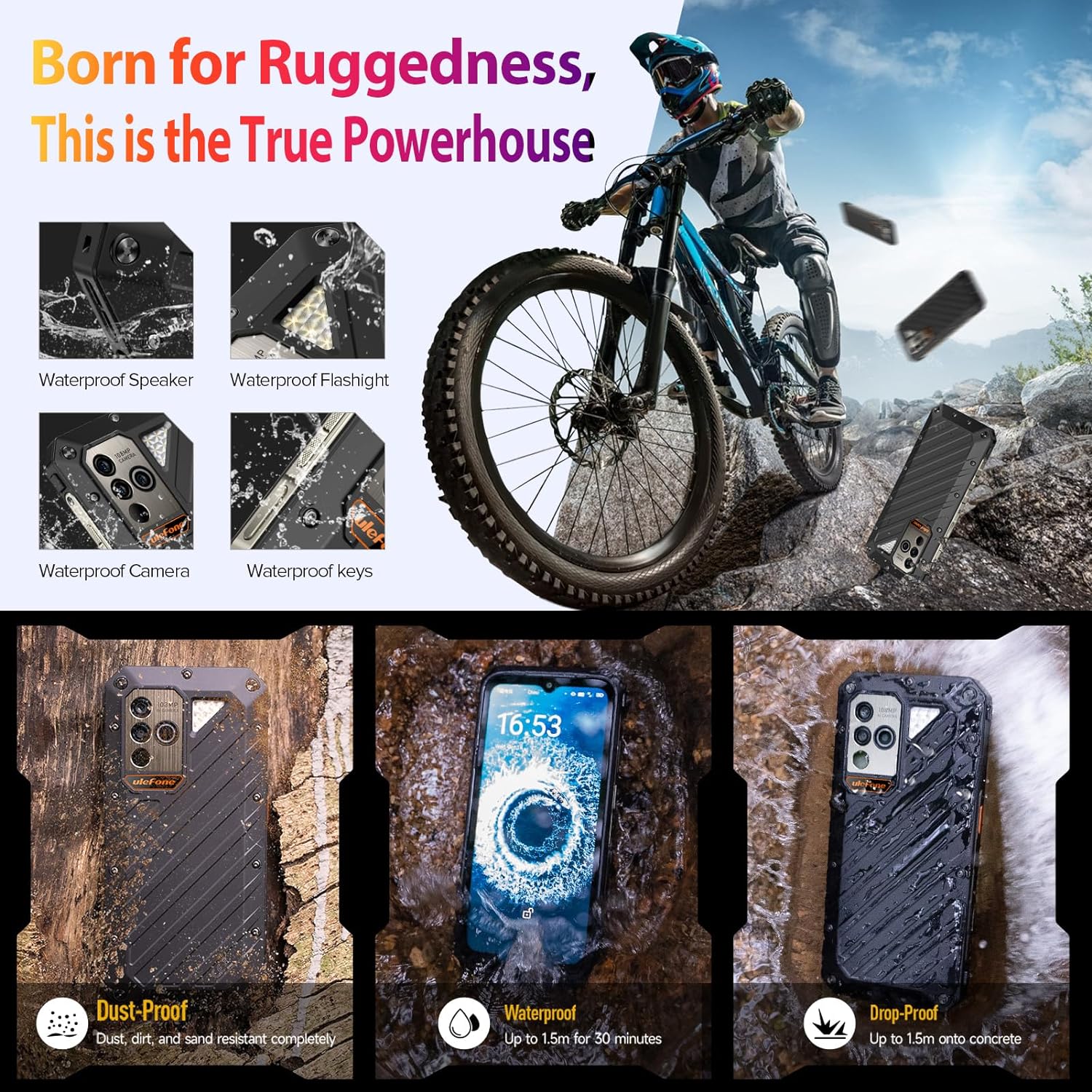 - 【More Exciting Features】Android 13, Fingerprint Unlock, NFC, Headset-Free FM Radio, Custom Key, Gloves Mode, Underwater Camera, PracticalToolkit, GPS+Glonass+Galileo+BeiDou, etc.