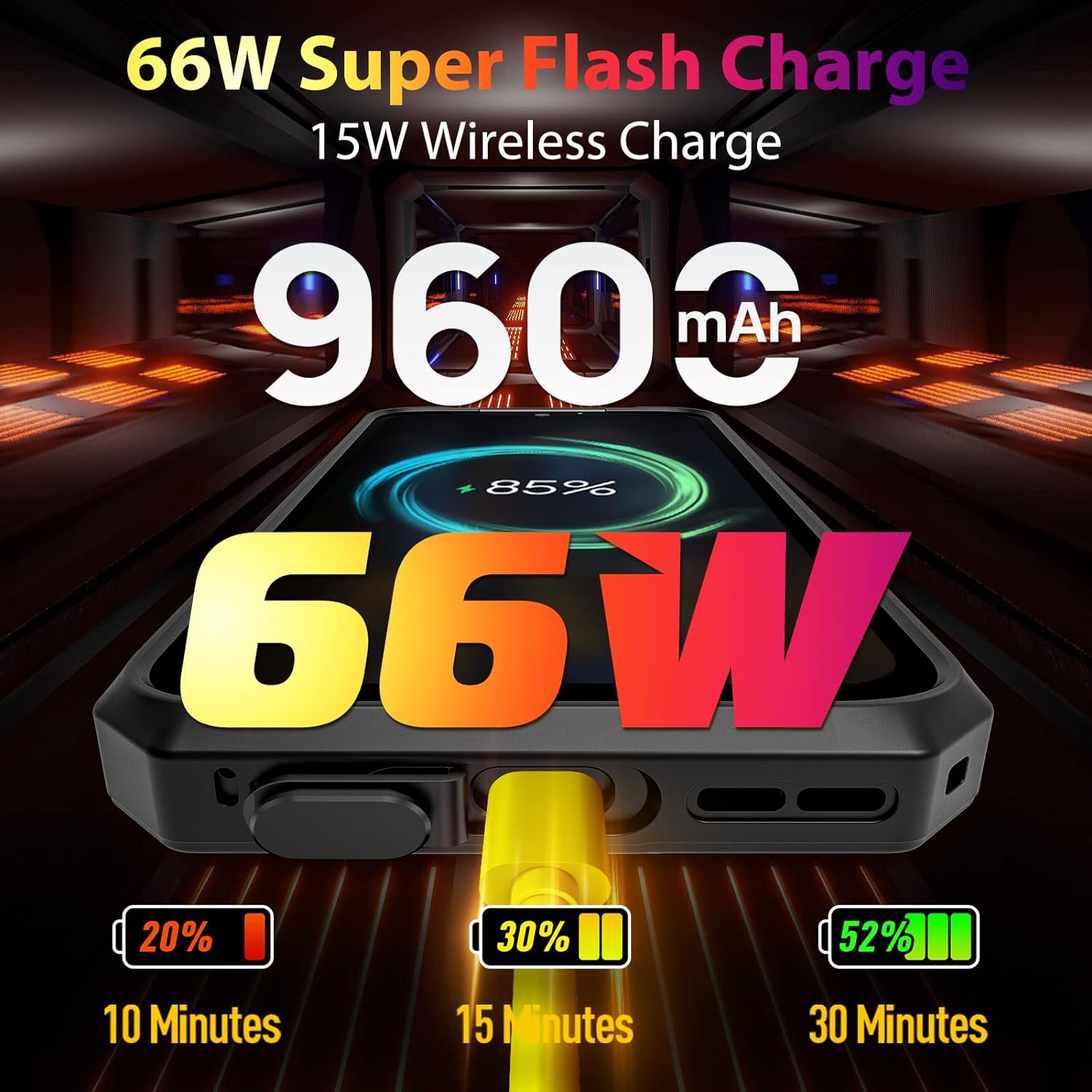 - 【9600mAh Battery + 66W Flash Charge + 15W Qi】A larger 9600mAh battery keeps the phone going longer, with up to four days of normal use on a single charge. It also supports 66W Super Flash Charge, 15W Wireless Charging and Reverse Charging.